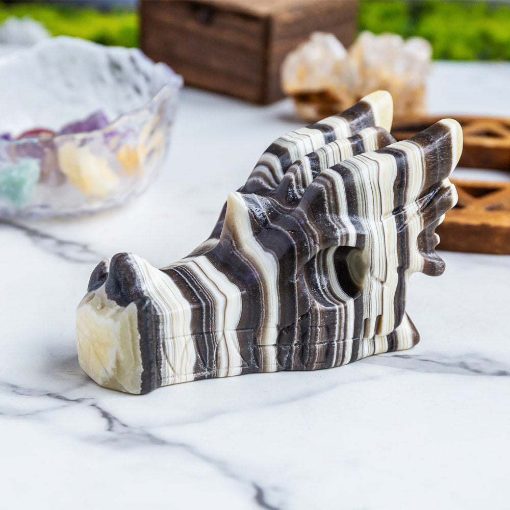 ► Zebra calcite has gentle healing energy. He is able to heal the wounds and frailties of the heart, bring care and repair to you, and help you be willing to trust again and regain courage and trust, allowing the energy of love to enter the heart and bring peace and stability. Zebra calcite can help you see hope and blessings in the dark and feel that you are being cared for and seen under grace. If you wish to transform negative energy and consciousness and become more in touch with your inner self, zebra calcite can transform low self-esteem, darkness, pessimism, negativity and negative emotions, and can be a healing stone to carry you through bad times.