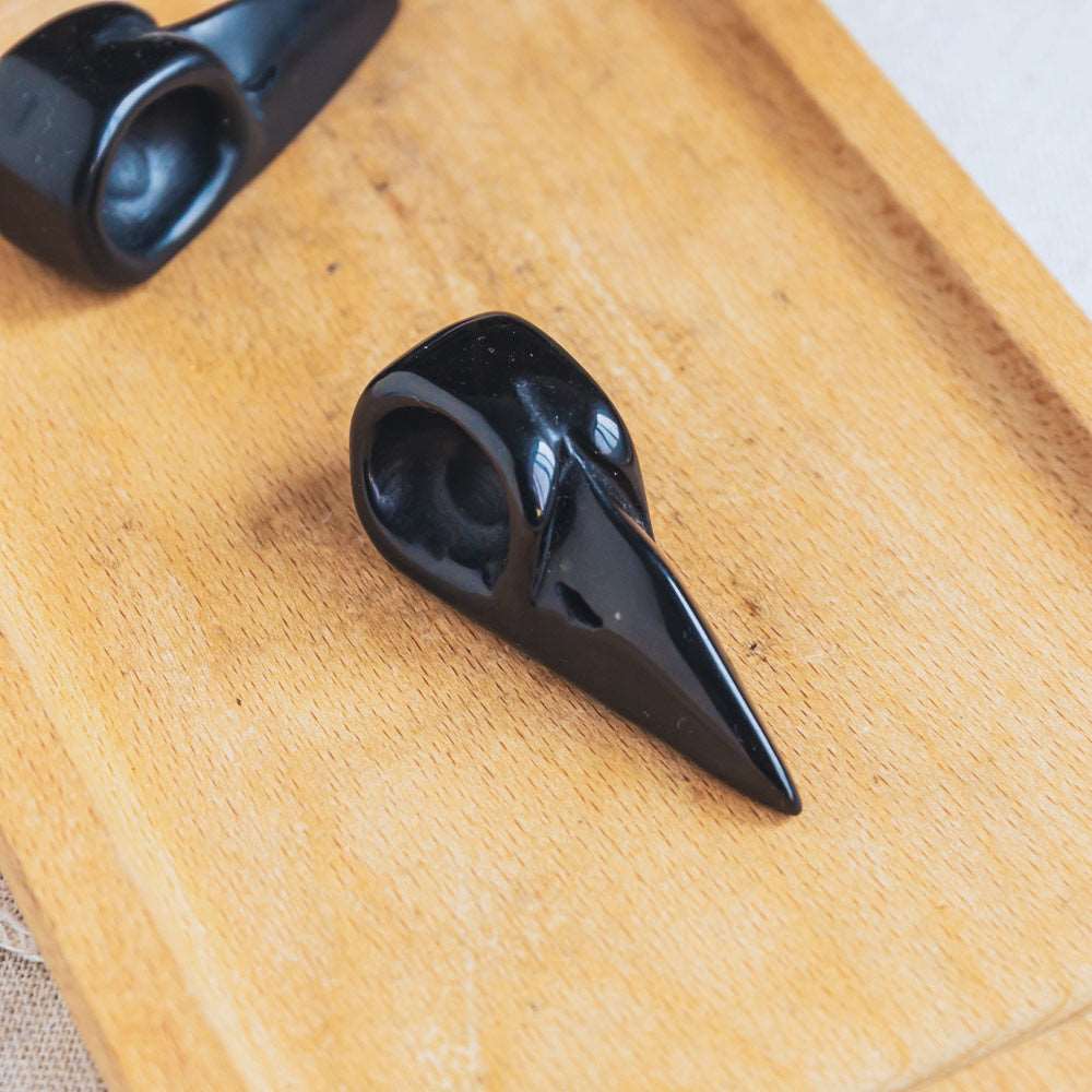 Reikistal 2" Black Obsidian Raven Skull