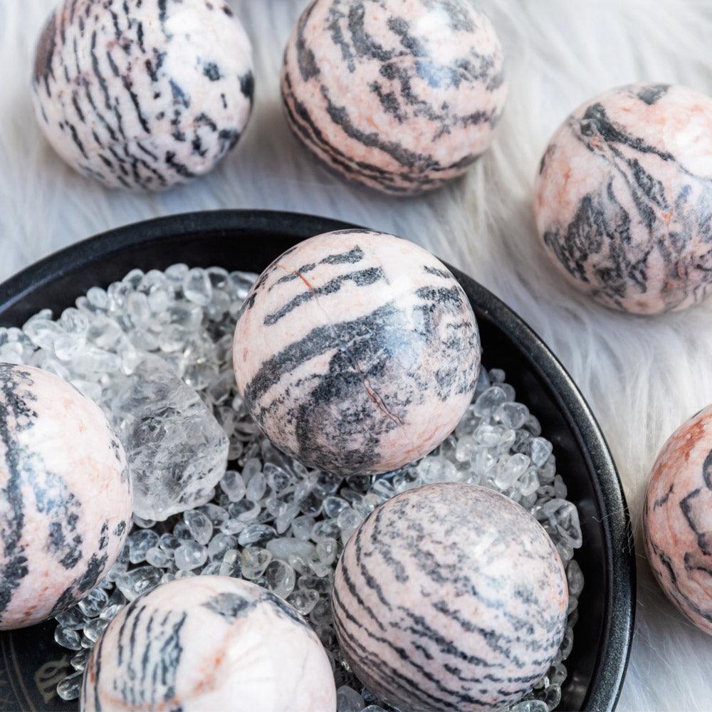 Reikistal Sphère de calcite zébrée rose