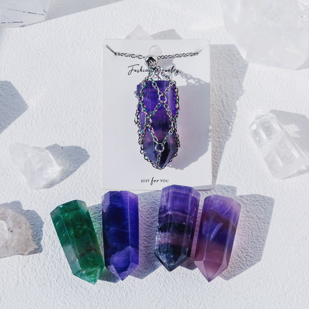 【Aura O Mesh】Natural Crystal Adjustable Necklace【Point/Tumbled】