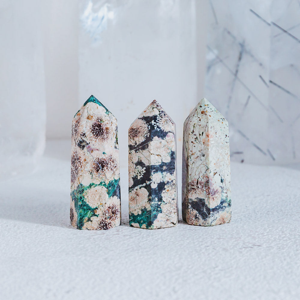 ► Russia Flower Agate has the gentle, nourishing energy of a flower field. The circles and dots represent the seeds, and the flower feathers represent the flowers, reminding us that we start with seeds, then blossom and grow. Flower agate helps us envision the process of growth, respecting and appreciating every part of that process.